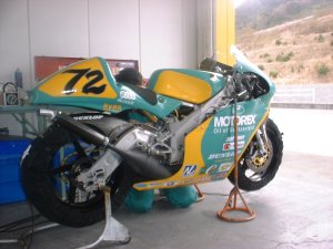 GP250ではお馴染み宮崎選手も参加してましたので、また色々とマル秘話?を聞 いてきました。うう、鈴鹿GPが楽しみです。 GP250の他のヤマハ有力ライダーは大崎選手、小山選手、昨年最終戦で優勝した 横江選手もいました。また大崎選手が予選ギリギリ狙い?の我々の事を考えずに(全日本はポールの110%規定)無茶苦茶なトップタイムを出してましたが、困ったも んです?