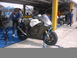 3/12・13は美祢サーキットで2メーカー合同テストがありました。 なんといってもスズキのMOTO−GPマシンXRE0(エックスアールイーゼロ) のテスト走行が眼目でした。タイム的には下記のとおりですが、音が悪い。というか、 4stエンジンのイメージではなく、直管のロータリーエンジンを連想させました。 確かに直線の速さは大迫力でしたが。同車のスタッフは皆、耳栓を装備していたのは F1っぽいんですが、要はうるさいんです。四輪ってフォーミュラ以外はイイ音とは 感じないですよね。他メーカーの4stマシンが楽しみです。